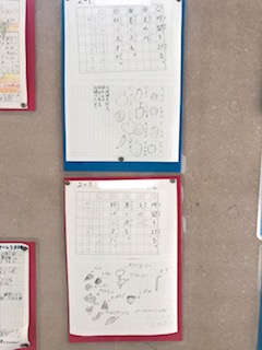 青の台紙は、国語や算数など教科の復習や習ったことの練習