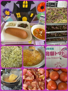 「牛肉の香味焼き」は、牛肉にオールスパイス、ワイン、塩、こしょう、ウスターソース、オリーブ油で下味をつけ、ピーマンを混ぜ合わせて焼いています。オールスパイスで味付けしているので、肉の臭みが消え、スパイシーな香りで食欲が進む一品です。「トマトのスープスパゲッティ」は、生のトマトを使用していて酸味とベーコンの旨みがスープに出て、とても美味しい献立です。