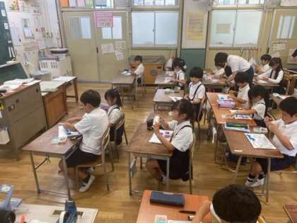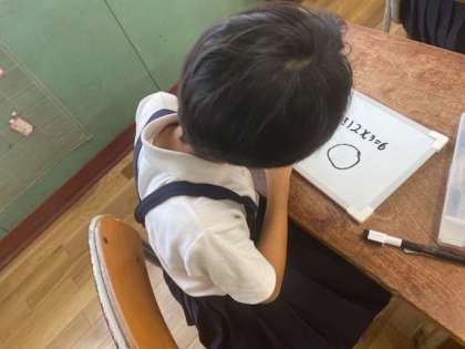 ホワイトボードを活用して、かけ算の学習に取り組みました。