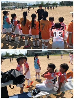 試合をがんばり、コーチの話をよく聞いて、次に活かします。応援の先生と和やかにほっと一息の時間もありました。