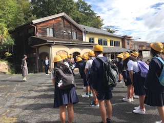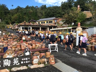 陶芸体験をします!たくさんのたぬきさんにビックリしています。みんな元気です。