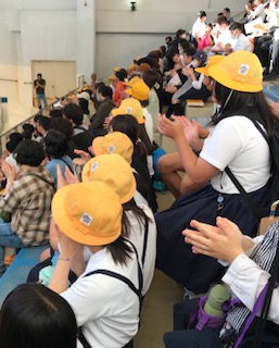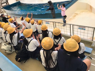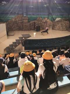 アシカショーが始まりました。アシカの上手な芸に、感動!大拍手を送っています。