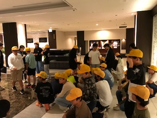 いざというときのため、避難訓練を行いました。非常階段を使って、すばやく静かにできました。