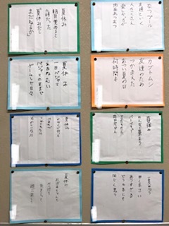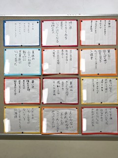 現在、秋の掲示で5年掲示板は新しくなっていますが、先日までは、5年の子ども達が作った短歌作品が掲示されていました。