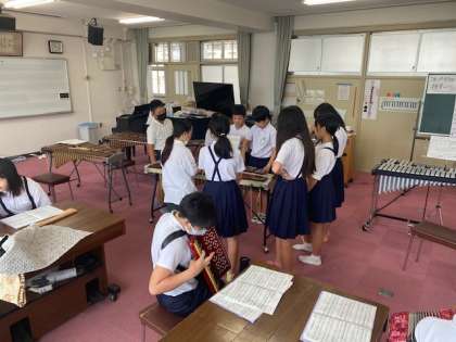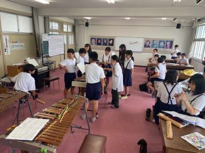 リコーダーやピアノ、木琴、鉄琴などを使って合奏に取り組んでいます。