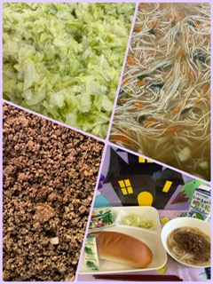 「タンタンめん」は、香りのよいにんにくやしょうがごま油で炒めたひき肉にテンメンジャンや赤みそで味付けした肉みそをお野菜の入った汁めんにのせて喫食します。
