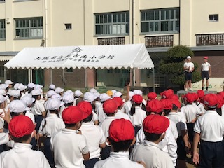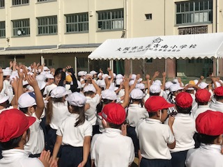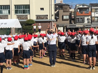 閉会式では、得点紹介もあります。勝敗があるとき引き分けのときなど、万歳や拍手の練習をしました。