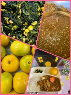 「ポークカレーライス」は、豚肉の旨みや玉ねぎの甘みがある子どもたちにも、大好評なカレーライスです。ミニーマウスのラッキーにんじんが入っています。