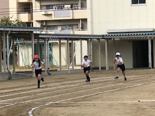 天気予報からは、運動場での練習は最後になりそうです。全力で走り切っている力強い姿です!