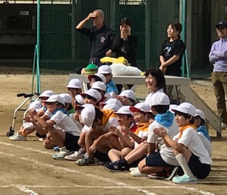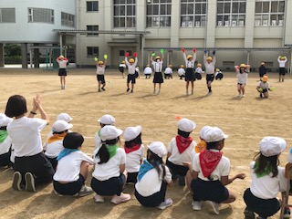 次は、2年生が5年生の演技を見る番です。カラフルな手袋で踊る5年生をみて、かっこいいなぁ、とつぶやきがありました。