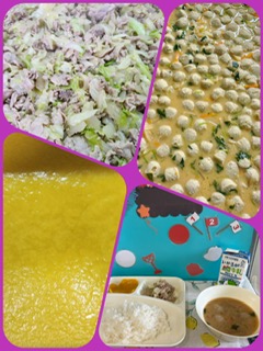 今日は寒い中の運動会、温かくて栄養満点のつみれ汁で、冷えきった体も温まり、どこのクラスも完食していました。かぼちゃのういろうも程よい甘さでとっても美味しかったです。