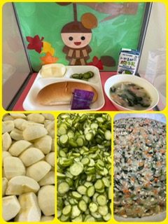 「豚肉ときのこのシチュー」は、鶏肉、ベーコンの旨みがありしめじ、エリンギ、マッシュルーム3種類のきのこがたっぷり入った体があたたまるシチューに仕上がっています。
