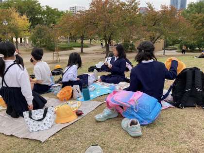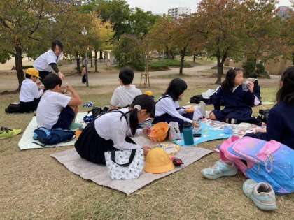 心配されていた天候にも恵まれ、扇町公園に着きました。お弁当タイムです。