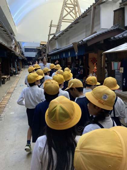 くらしの今昔館の見学です。今の大阪の街並みと様子が違うことがよくわかります。子どもたちは、タイムスリップしたようです。