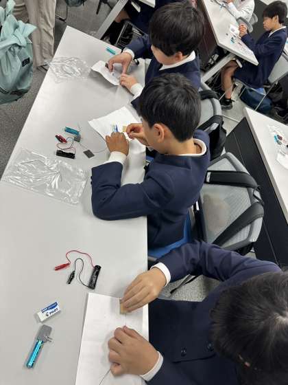 友だちとも協力しながら、手作りモーターの制作に取り組みました。