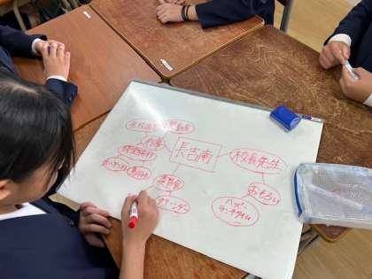 長吉南小学校の校長先生は、おもしろくて、ハッピーランチタイムと子どもたちの中でつながったようです。