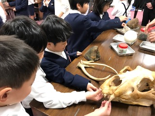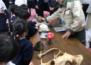 お話を聞いた後は、骨やはく製に実際に触れさせていただきました。これらは最終ニスで固められており、子ども達が触れても人体への影響がないよう十分に処理をされていますので安心です。