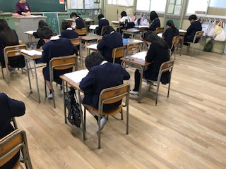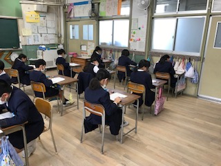 普段とは違う形式のテスト、基本的な計算から数量や図形など種類が様々な問題が続きます。難しい問題も最後までねばりづよく取り組み、できたら見直しを行っています。