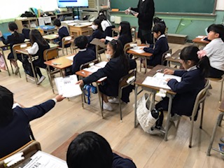 初めての学力経年調査を経験した3年生ですが、この理科が最後の調査です。あとひとがんばり。理科の調査はどんな問題がでるのか?ドキドキしながらテストの問題を一人一人受け取ります。