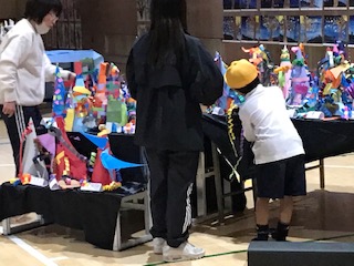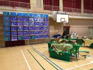 発達段階に応じた作品が並び、学童期の成長過程も感じることができる空間になっています。個人懇談会と予定を重ねていますので、ゆっくりとご鑑賞ください。