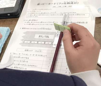 検査用の歯によいキシリトールのガムを嚙んで解析することで、自分の咀嚼の状態が分かるそうです。