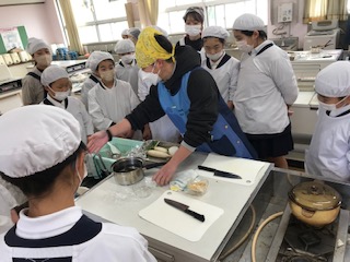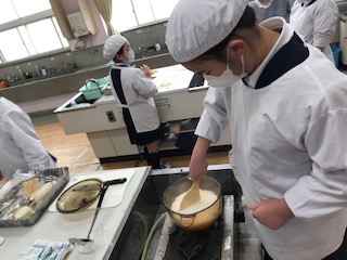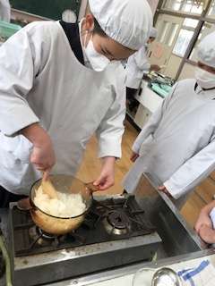 先生の説明や話をしっかりと聞き、調理に臨みます。