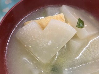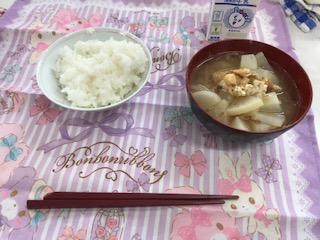 ハート形のラッキー大根が入っている班もありました。配膳ができたら、給食と一緒にいただきました。