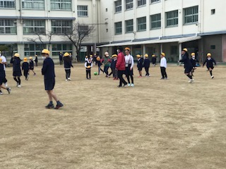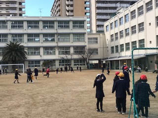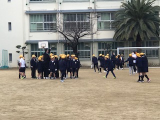 昼休みに雪が降ることを期待して、運動場に出て遊ぶ子ども達でした。