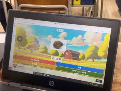 球技クラブはサッカーを、タブレットクラブは子どもが考えた問題を解き合いました。
