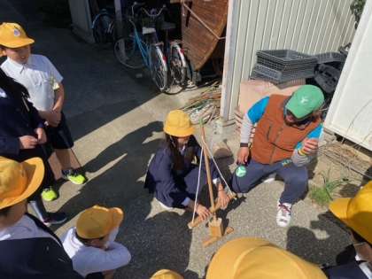 地域の方々に来ていただき、3年生は七輪体験をしました。
