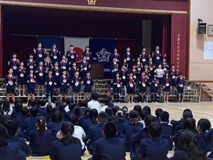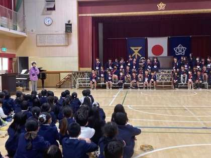 6年生から、手話付きの歌のプレゼントと、ぞうきんのプレゼントがありました。