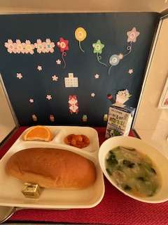 「えびのチリソースいため」は、にんにくや白ねぎトウバンジャンの香りとケチャップ味が子どもたちに好評な味付けになっています。デコポンも甘くて美味しかったです。
