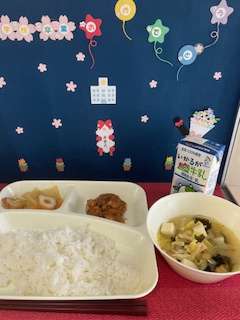 6年生は、今日で、小学校での最後の給食です。「いただきます。」「ごちそうさまでした。」と大きな声で元気いっぱいあいさつしていました。