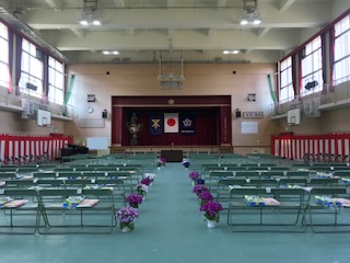 初めての大きな講堂での式でしたが、しっかりと話を聞いていました。