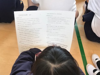 先生から配られたプリントには、授業や生活について、とても大切なことがていねいに記されています。みんながワンチームになって素晴らしい仲間をつくるために、一人一人が一生懸命に聞いて考えていました。