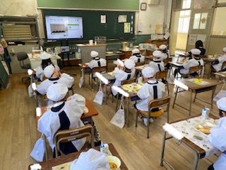 今は4時間目を早めに終えて、エプロンの着替え、手洗い、など基本をしっかり学び身につける時間をとっています。