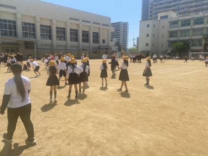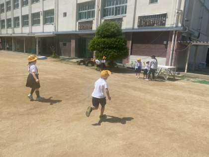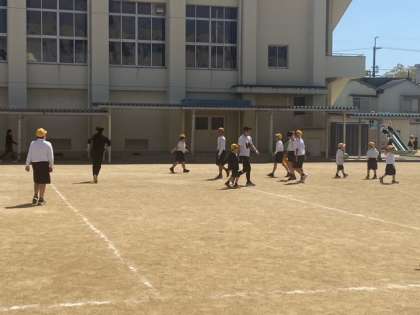 今日もいい天気です。昼休み、子どもたちは元気いっぱいに運動場で遊んでいます。