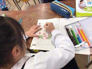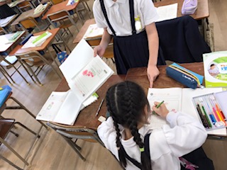 お友達とノートを見せ合いながら、アドバイスもしあっています。