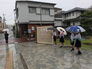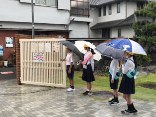 先週からの1週間、感染症による学級休業が相次ぎました。休業した学級も健康を回復し、順番に再開しています。今日はあいにく雨の朝ですが、運営委員会の子ども達が登校時のあいさつ運動をがんばっていました。