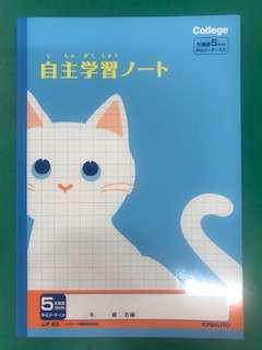 今回は、自主学習仕様のノートを用意しました。自主学習の紹介プリント(ピンク色刷り)も同時に配付していますので、お子様と一緒にご覧ください。