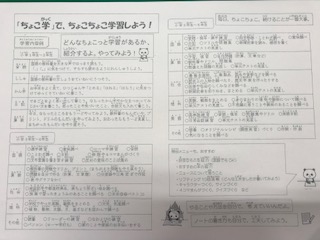 昨年度からの取り組み「ちょこ学(がっく)」を今年度も続け、家庭学習や自主学習の習慣を子ども達に身に付けさせたいと考えています。