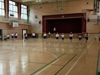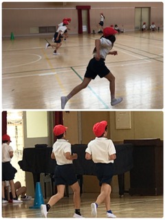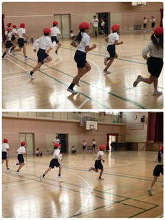決められた距離を自分の体力が続くまで、一定のリズムに合わせて往復します。はじめは全員でスタート、だんだんと人数が少なくなっていきます。最後の数人になると、「がんばれ!」と長く走る友達を応援する姿がたくさん見られました。