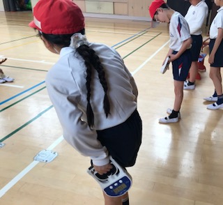 先生の話や注意事項を聞いてから、ペアになって行っていました。正しく計測できるコツを意識しながら頑張っていました。