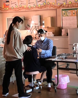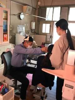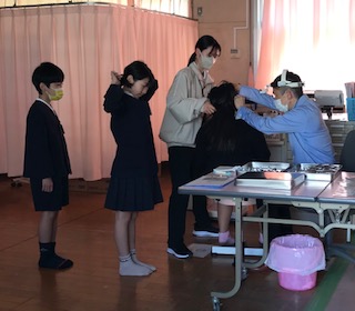 耳鼻科検診(臨時)を行いました。髪の毛もまとめて、準備よく、診ていただきます
