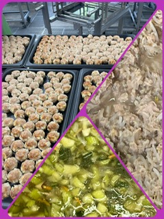 「鶏肉とはるさめのスープ」は、鶏肉を主材にしいたけで旨みを増し、玉ねぎ、にんじん、青みにチンゲンサイを使用しています。はるさめが入っているので、ボリュームのあるスープに仕上がっています。