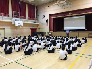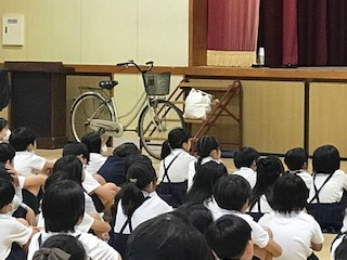 高学年の交通安全指導は自転車の乗り方と注意についてでした。自転車は、自分が被害者にも加害者にもなりえる車両であること、ヘルメット着用の意味など、気を付けるべきことを学習しました。学びをしっかりと日常に活かせることを期待しています。