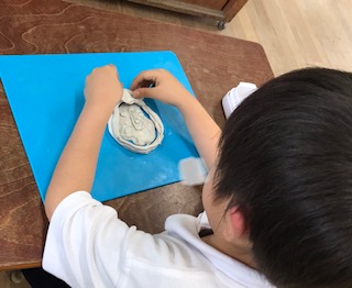 油粘土で好きな作品を作っていました。多くの子ども達は粘土が大好きです。手でかたちをつくったり、へらなどを使って整えたり、自由自在に発想を活かし楽しく創作していました。