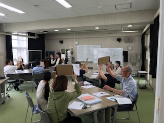 5月26日(月)授業が終わってすぐに、教員研修を行いました。本校で取り入れている、一人一枚のホワイトボード活用方法について、ミーティングの専門家の先生に来ていただきました。講義とワークに先生たちも楽しみながら頑張って学んでしました。