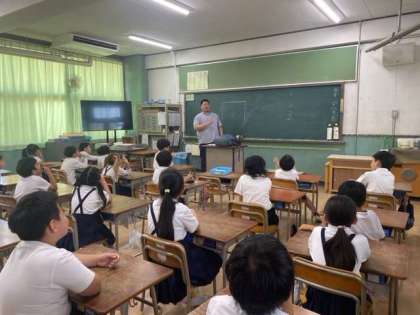 昨年度に引き続き、低学年からの英語に親しむことを目的として、マッツ先生に来ていただき英語の学習をしました。この取り組みは、1ヶ月に一回程度行っていきます。