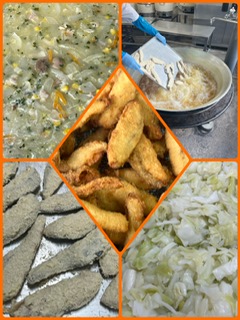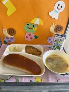 「豆乳スープ」は、ベーコンで旨みを出し、じゃがいも、玉ねぎ、コーン、人参、マッシュルーム、彩りにパセリを使用しています。豆乳のまろやかさを生かしたスープに仕上がっています。